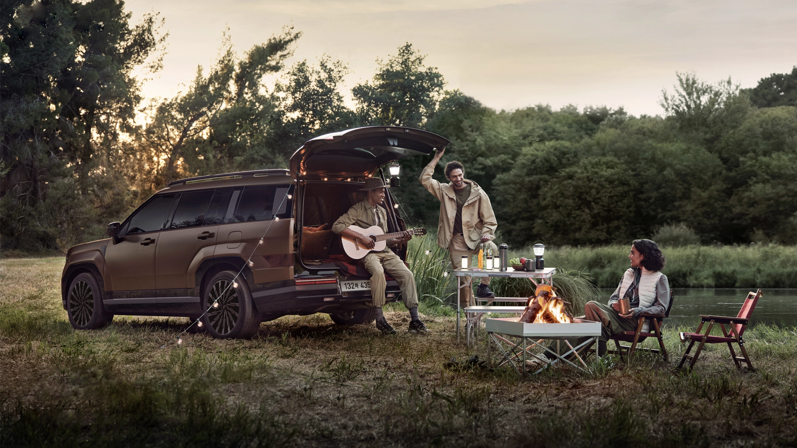 이번 싼타페 풀체인지는 아래 사진에서 보시는 것처럼 아웃도어 컨셉이 물씬 납니다. 캠퍼들을 겨냥한 듯한 컨셉 사진이 참 멋집니다.