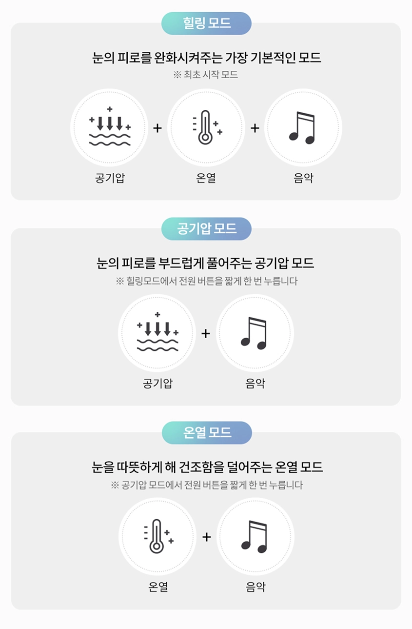 세가지 모드로 선택적으로 사용할 수도 있으나 저는 대부분 힐링 모드로만 사용합니다.